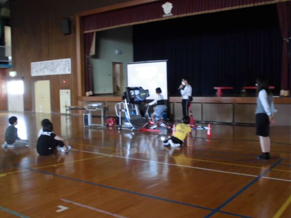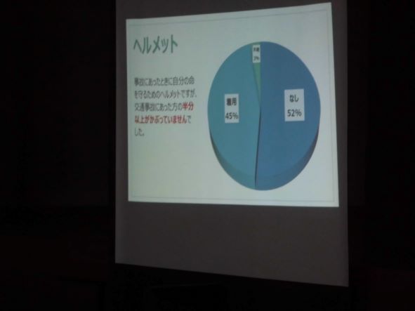午後は4年生が自転車の乗り方を学びました。点検やヘルメットをかぶることなど、基本的なことをしっかりするようにということから教えてもらいました。事故にあった人の半分以上がヘルメットをかぶっていなかったという資料も見せていただきました。