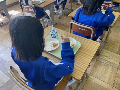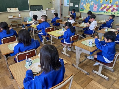 「おいしかったよ。」と教えてくれた1年生、これからの給食も楽しみにしているようです。