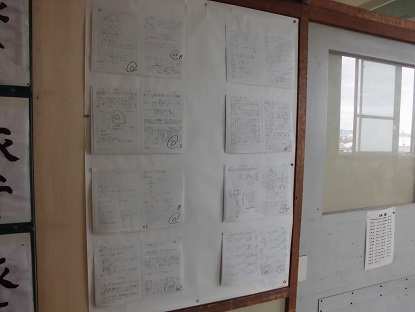 6年生の自主学習の紹介コーナーでは、前向きな気持ちと期待感にあふれるノートが掲示されていました。わくわくが高まってきます!