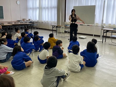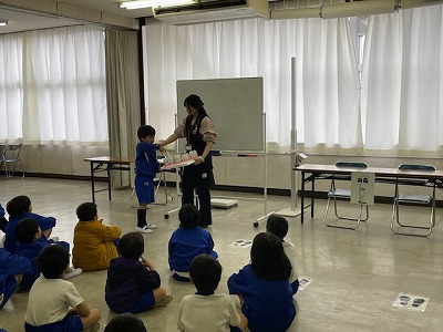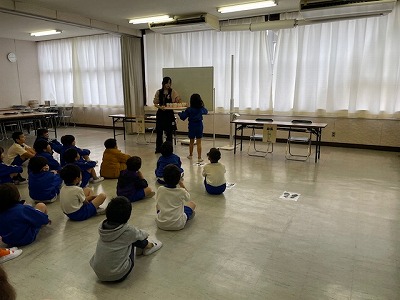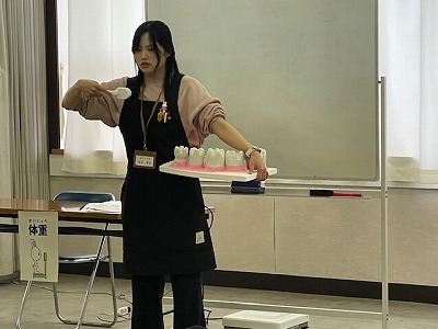 校長室向かいの会議室で、2年生が原田先生から「歯磨きの正しいやり方」を聴いていました。今年度は、給食後の歯磨きタイムを設けていきます。