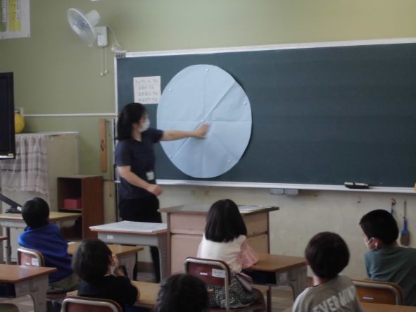 5/31(月)1年生が栄養教諭の先生からお話を聞きました。