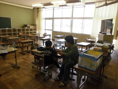 7月で夏季学習会が終了し、学校へ来る児童はほとんどいなくなりました。「ほとんど」と表現したのは、実は学習に来ている児童も少数ですがいるんです! その一つが、『日本語パワーアップ教室』です。日本語の習得に頑張っている児童が午前中2時間、みっちりと勉強にいそしんでいるのです!