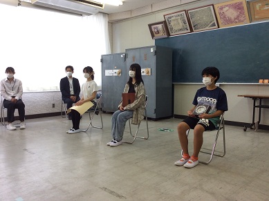 次に、始業式で校長先生からお話を聞きました。夏休みの振り返りとチャレンジや楽しい二学期にしようというお話でした。校長先生は一学期の終業式で笛にチャレンジすることを宣言していたので、その成果を披露していました。その曲はなんと、育生小学校の校歌でした。最後まで吹き終えると、拍手が起こりました。きっと各教室でも拍手が起こっていたことでしょう。みなさんは、夏休み中にどんなことにチャレンジしましたか?