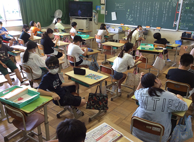 始業式の後、子どもたちは各教室で夏休みの宿題を提出したり、新しい教科書を受け取ったり、先生からのお話を聞いたりしていました。