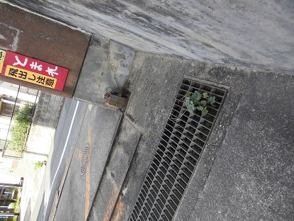 こちらはプール横の門です。その前の側溝から、へちま(?)がニョキニョキと這い出してきているではありませんか!