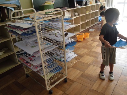 作品を大事に扱うということも、「自分が大切にされているという自己有用感」につながっていく大切な活動です。作品棚に入れるっていうのも、かっこいいよね!