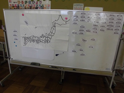 都道府県を覚える巨大地図がありました。最近、関東地方の群馬・埼玉・栃木がパッと見分けられなくって自信喪失気味の私は、さっそく確認した次第です! いくつになっても勉強だ~い!