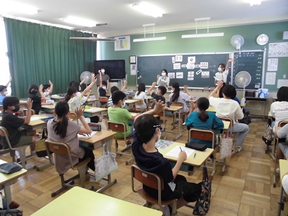 税について、6年生が学習しました。講師は、県税事務所の税のプロの方です。子どもたちに、税金に関する質問を出しながら、税の仕組みを教えてくださいました。(ちなみに、救急車を呼ぶと・・ 日本は無料ですが、アメリカのニューヨーク州では3万2千円ほど請求されるそうです。)