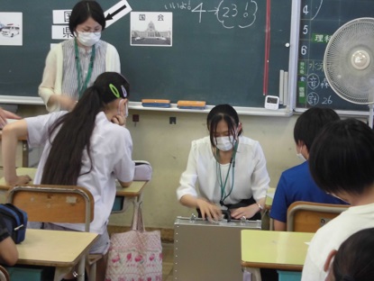 何が出てきたかというと、お金の見本! 金額は子どもたちに聞いてみてください。ヒントは、10キロぐらいあるそうです! 子どもたちは興味津々でした!