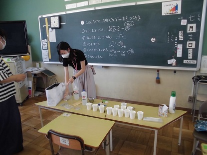 なないろ学級1・2組が、合同でスライムづくりに取り組みました。この写真は、事前準備の様子です。待ちの時間が少なくなるよう、段取りが重要です。興味関心を引き出せるように工夫しながら、また活動そのものの質と量がUPするようにと、先生たちの意気込みも盛り上がります!