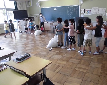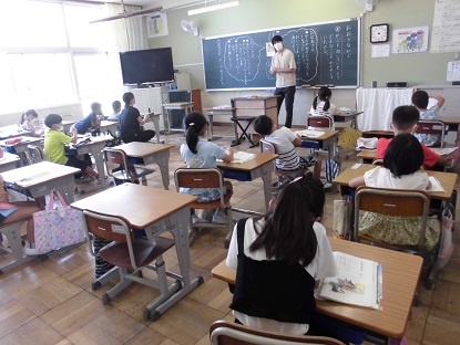 1年生の国語です。「うんとこしょ どっこいしょ!」このフレーズを唱えていただければ、なんのお話の勉強か わかっていただけるのではないでしょうか。手作りの大きなかぶが登場して、みんなで引っこ抜く動作をしていました。子どもたちは登場人物になりきっていました! ステキな学習です!