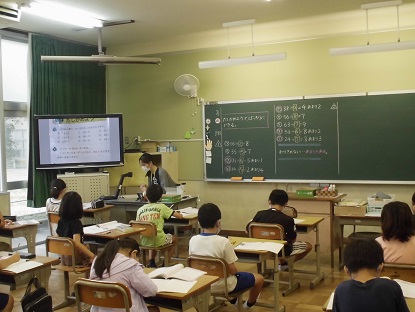 こちらのグループでは、あまりのある割り算の文章題にチャレンジしていました。この文章題は考えのめぐらせどころです!例えば、「タイヤが30個あります。おもちゃの自動車は何台できますか?」「ケーキが30個あります。4個入る箱に入れていきます。箱はいくついりますか?」計算した あまりの分 をどう考えるか! わかった時の子どもたちの満足気な表情は最高です!
