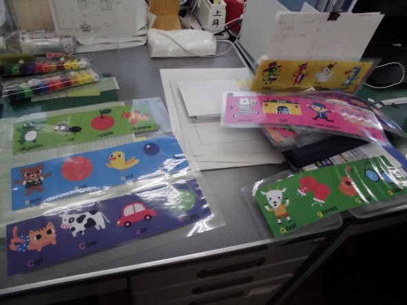 先生にインタビューしてみると、フォニックスという学習方法を説明してくれました。「フォニックスとは、発音と文字の関係性を学ぶ音声学習法で、もともと英語圏の子どもたちに読み書きを教えるために開発されたもの」らしいです。同じスペルで始まる単語、例えば cat cow car candy と連続で発音し、cの発音を身につけていくのだそうです(英語苦手の私が、はしょっての説明をしているので、少し不安です) 。