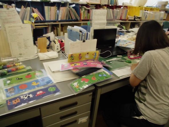 職員室で、黙々と教材準備にいそしむ先生を発見!
