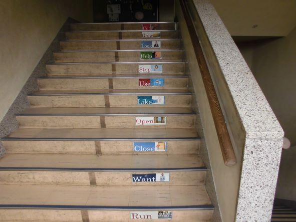 写真は、階段です。3か所全ての階段に掲示があります!