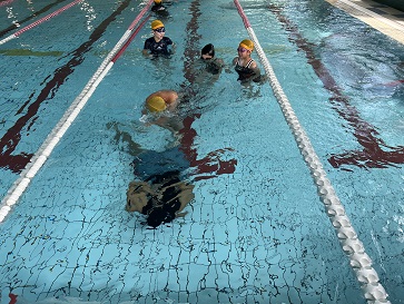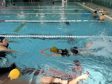 プールから出てきたところで、中日新聞さんから取材を受けました。本年度からスタートした民間プールの活用に関する取材の一環で、「泳いでみてどうでしたか?」というような児童へのインタビューです。しっかりと答えています!