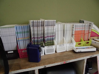 こちらは、どの教室にもある通称 “置き勉” 。ランドセルが重くならないように、学校へ置いていく教科書やノート、ファイル等です。タブレットの持ち帰りも始まったので、置いていけるものは置いていくようにしています!