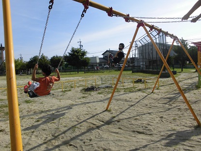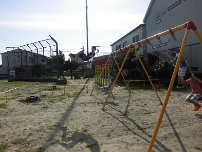 天気に恵まれると、子どもたちの遊びにも勢いが増してきます。「おーい!こわくないのかあ?」と、思わず声をかけてしまいました。お空へ飛んでいってしまいそうな勢いです!