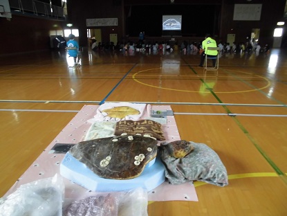 ウミガメネットワークの方々に来校いただき、ウミガメを守る活動についてお話を伺いました。たくさんの標本や展示物を持ってきていただき、映像を織り交ぜながらのお話で、3年生の子どもたちはワクワクであふれていました!