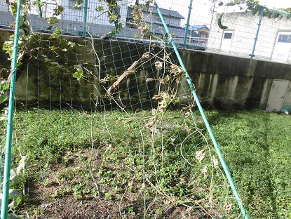 午前3時過ぎに暴風警報は解除されましたが、まだまだ風が強かったです。ヘチマも風にあおられ、ブランコのように大きく揺れていました(ネットのフランスパンのようなヘチマが45度の角度に吹き流されています)。