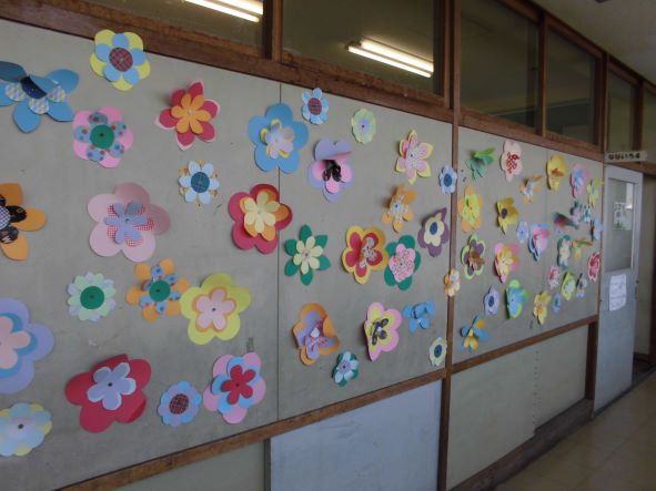 広い校舎を歩き回っていると、子どもたちの作品にたくさん出会います。まるで美術館を歩いているような気分になります。