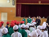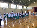 クラス対抗ソフトドッヂボール大会」低学年の部がありました。体育館を二つに分けて、一年生1組vs2組、二年生1組vs2組対決をしました。白熱した闘いに大きな歓声があがっていました。