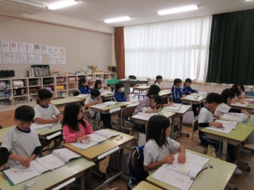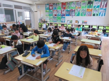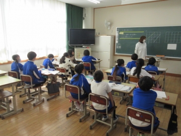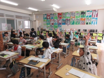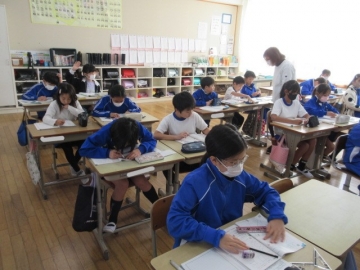 教育長さん訪問② 1ねんせい「こくご」