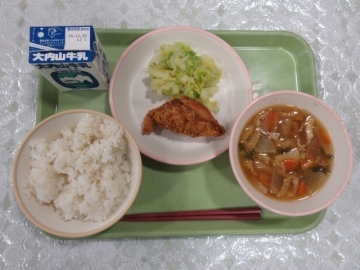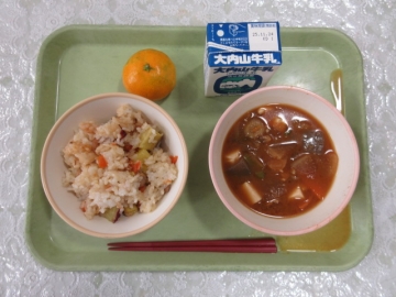 ・ふきよせごはん ・ぶたじる ・みかん ・ぎゅうにゅう