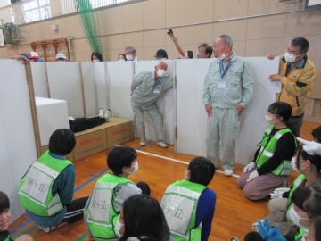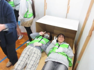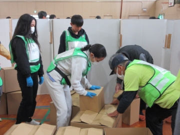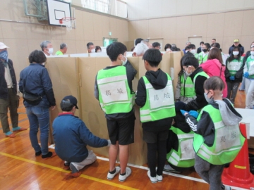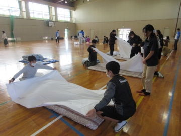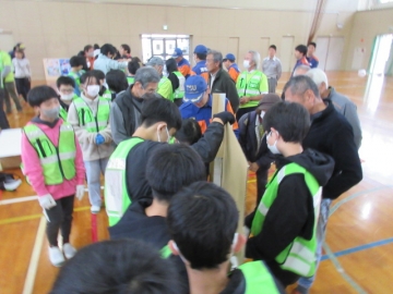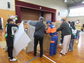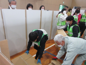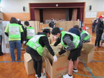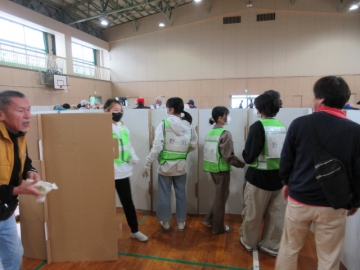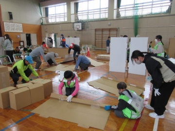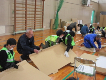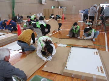 では地区ごとに分かれて、「段ボールベッド」と「パーテーション」を組み立ててみましょう!