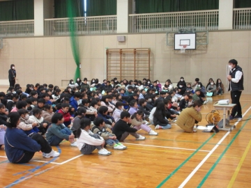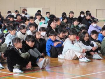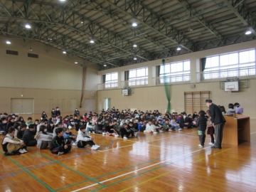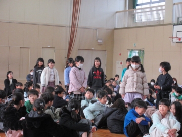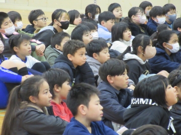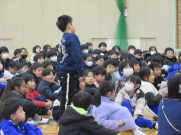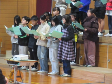 12月23日(火)、全校児童が体育館に集まりました。終業式が始まります。