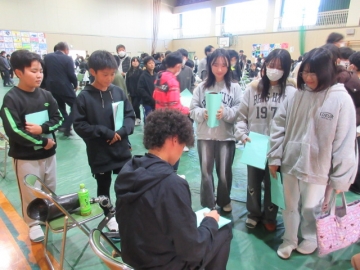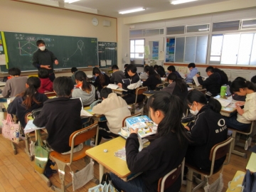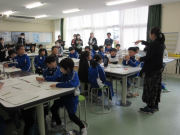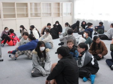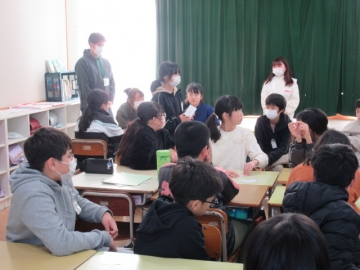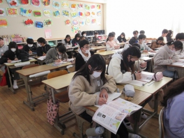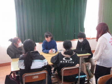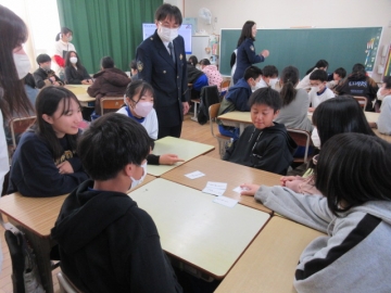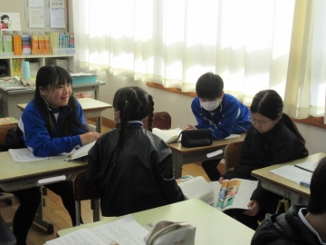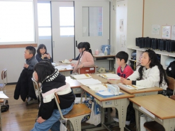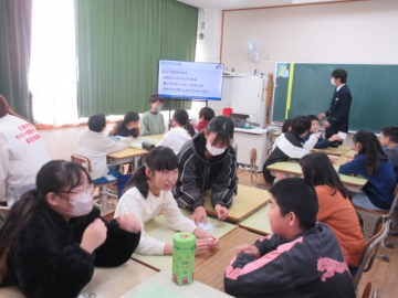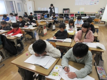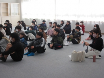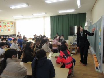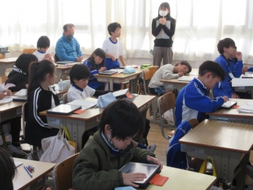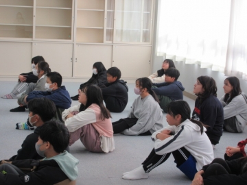 【3年生】 冬休み、どんなことに気を付ければよいか先生のお話を聞き、みんなで話し合っています。