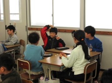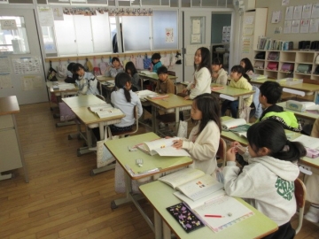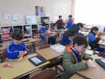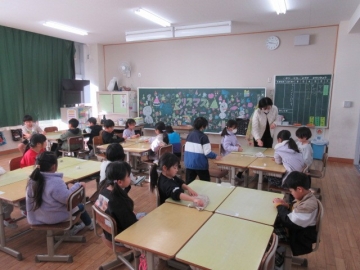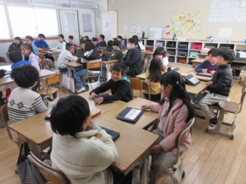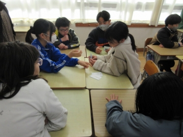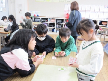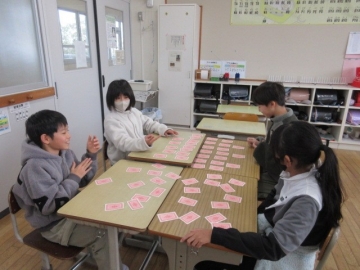 【4年生】 グループごとにトランプでゲームを楽しんでいます。この2学期、グループで色々なことに取り組んできましたね。