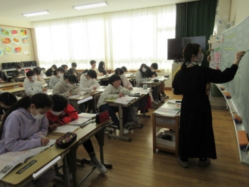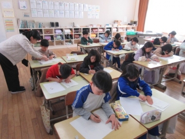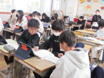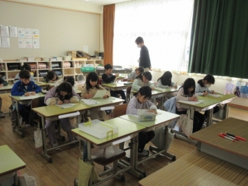 【6年生】 いよいよ「卒業文集」の準備が始まりました。素敵な文を書くためのコツを、先生が丁寧に説明しています。どんな文集になるのか楽しみです。