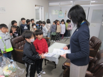 「豊かな海づくり大会作文コンクール」で優秀な成績をおさめた児童の表彰です。