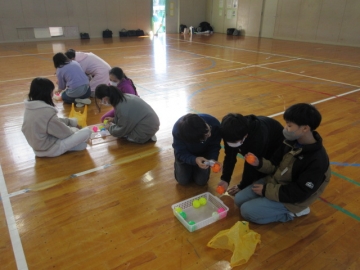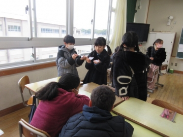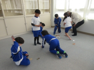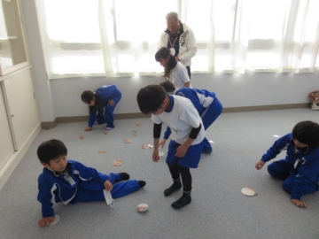 【5年生】 お楽しみ会で「爆弾ゲーム」が始まりました。友達のことを考えて行動しようとする場面が多く見られるようになってきた、5年生です。