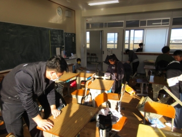 自分の椅子や机から掃除を始めています。