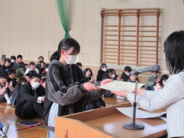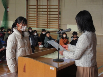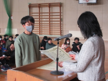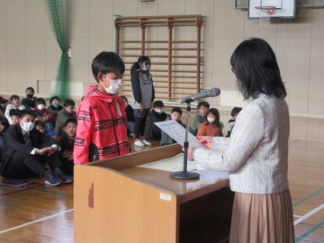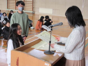 代表児童が賞状を受け取ります。