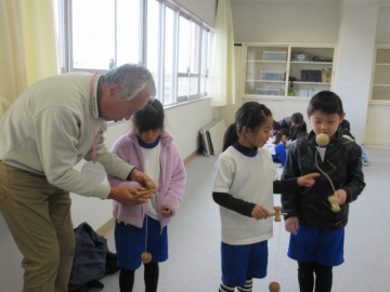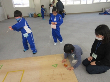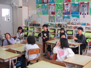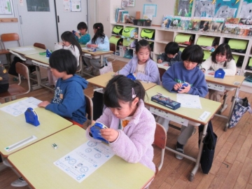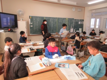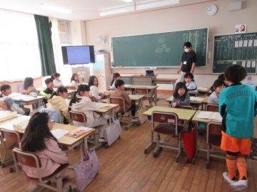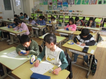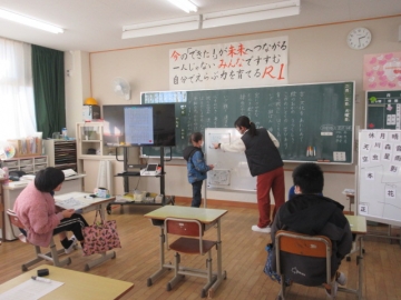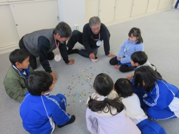 学活の時間に、みんなでゲームを楽しんでいます。