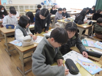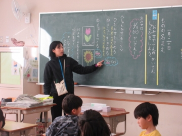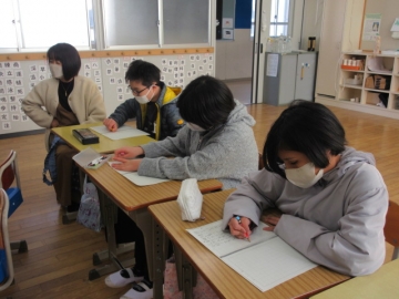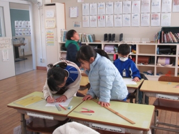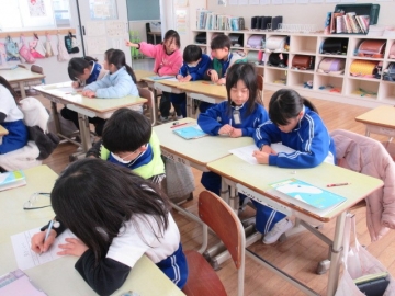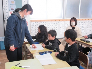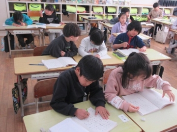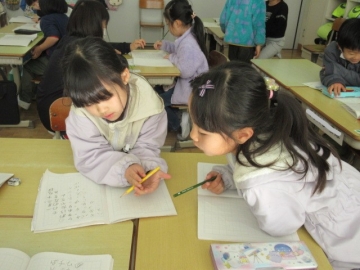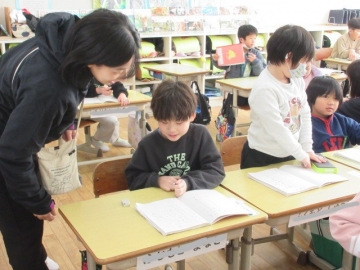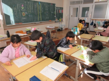 外国から転校してくれたお友達。毎日2時間ずつ、教育委員会から来ていただいた先生に日本語を教わっています。