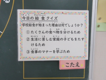 給食の時間に、となりのトトロの「風の通り道」のメロディーが流れました。今日は「NOメディア・NOゲームチャレンジ」の日です。