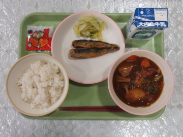 12月18日、2学期最後の給食「カレーライス」
