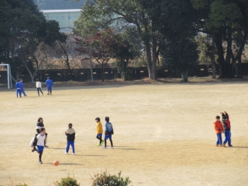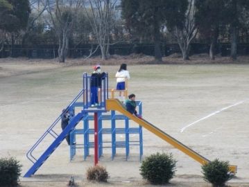 あたたかな日になりました。広い運動場で、それぞれの時間を過ごしています。