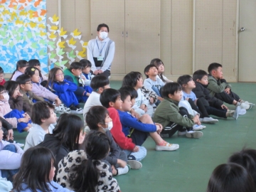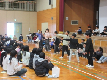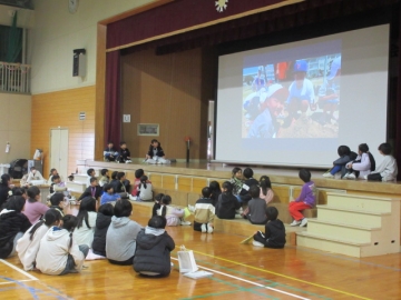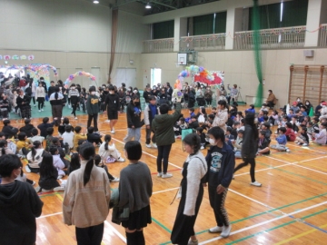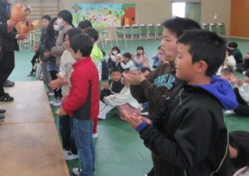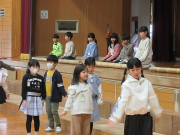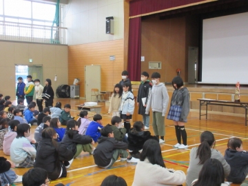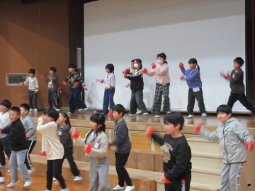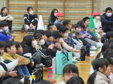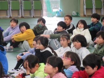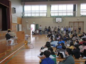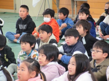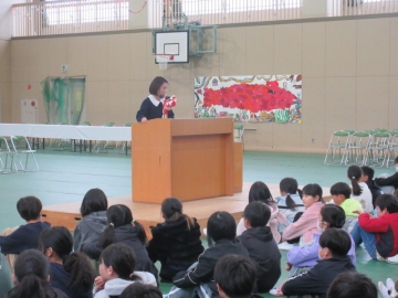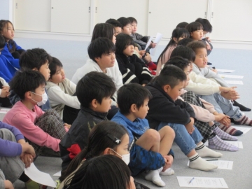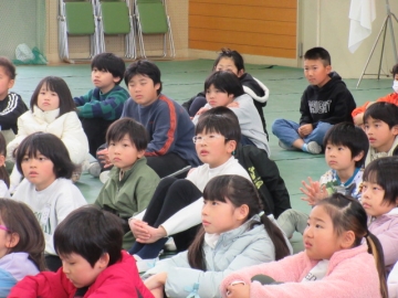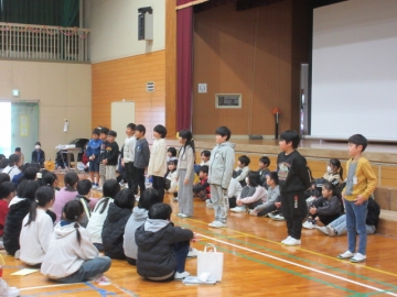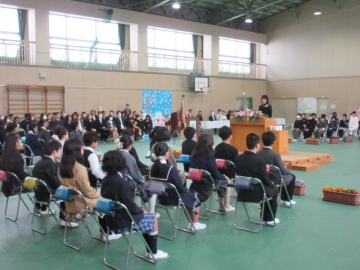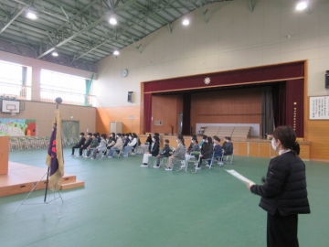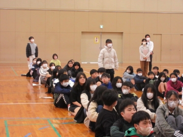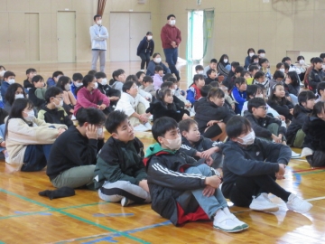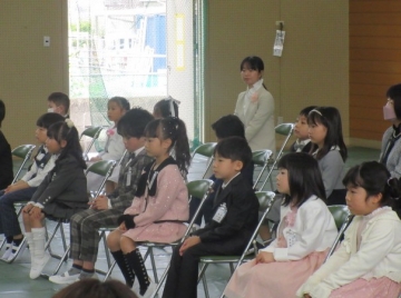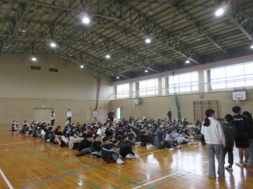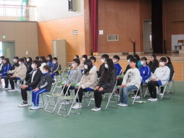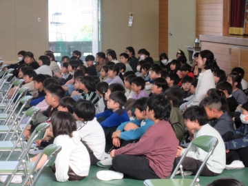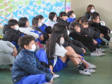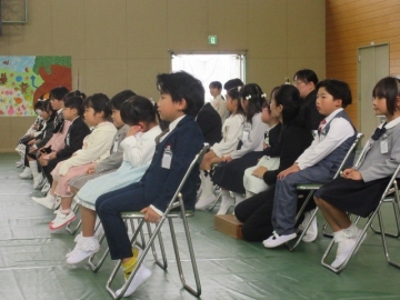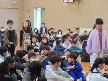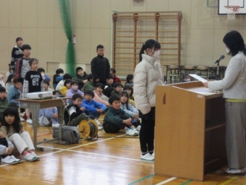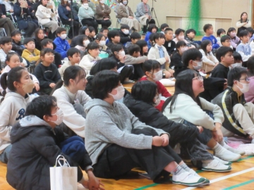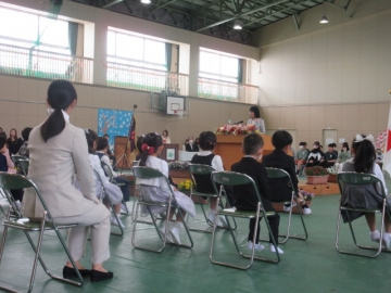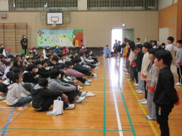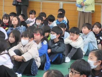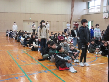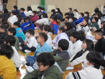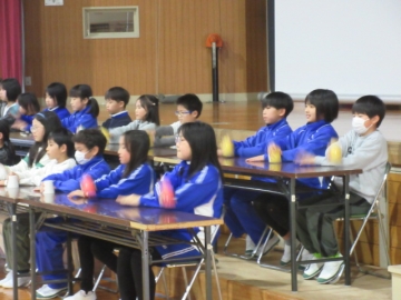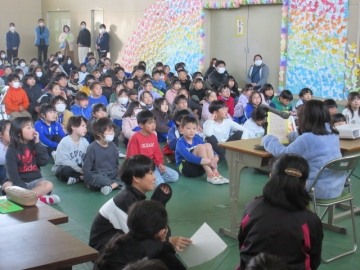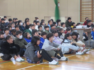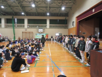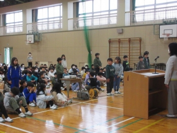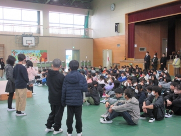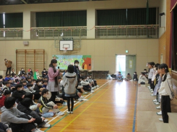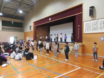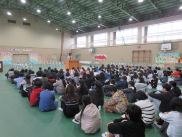 全校児童が体育館に集まりました。