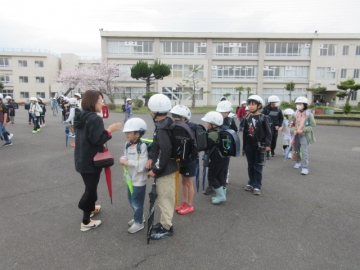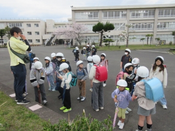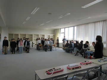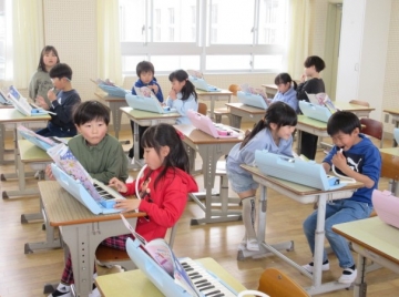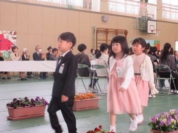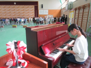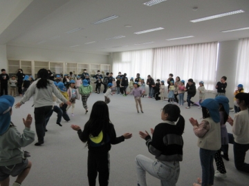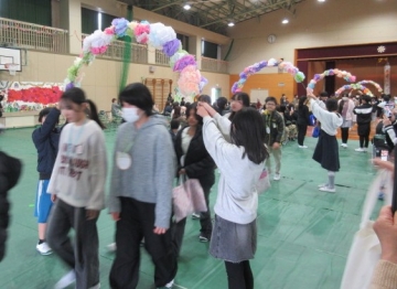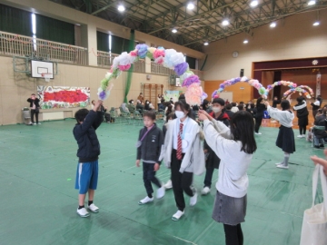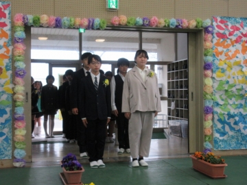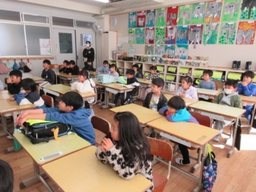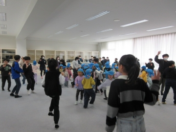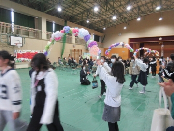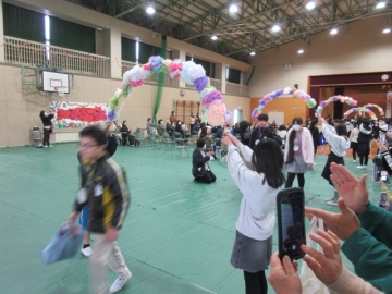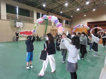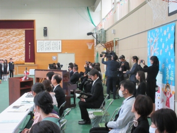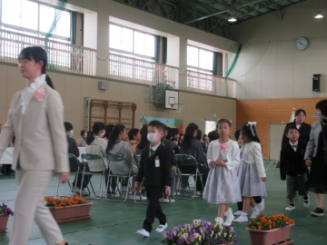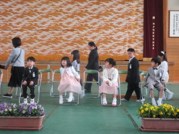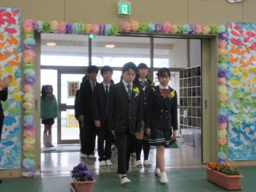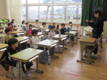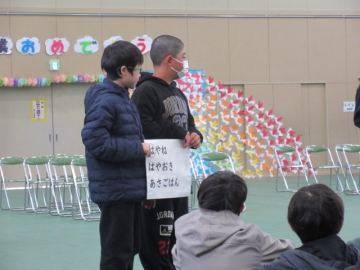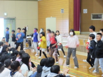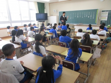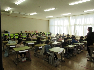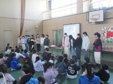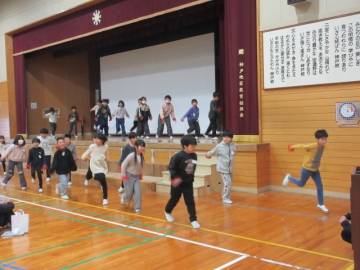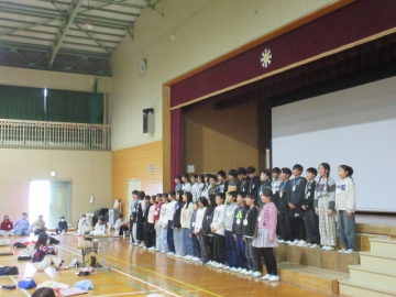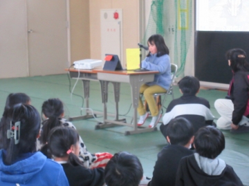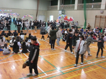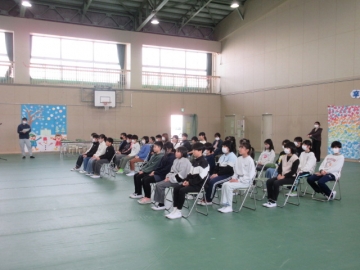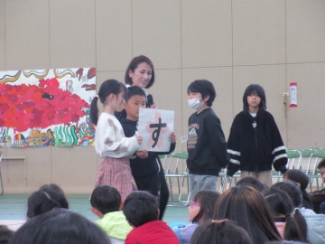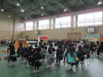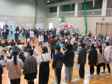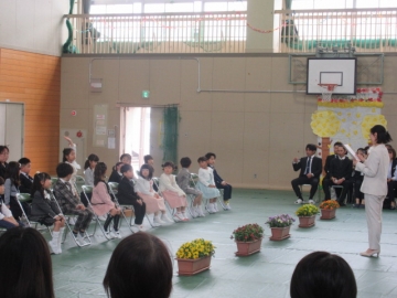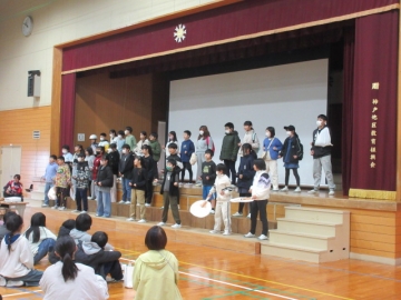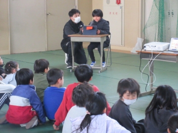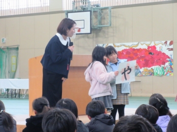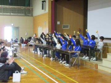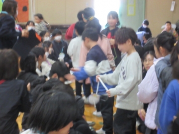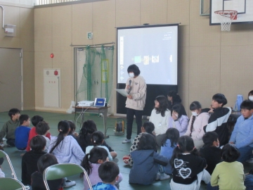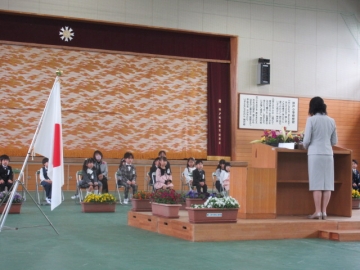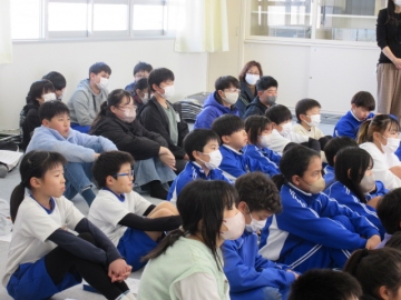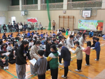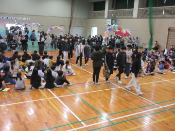全校児童が体育館に集まりました。