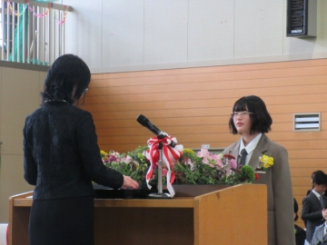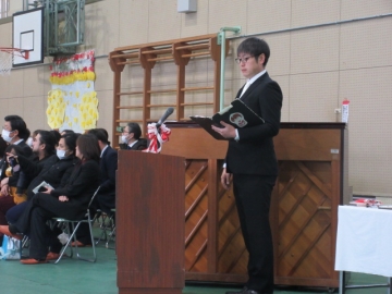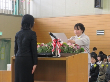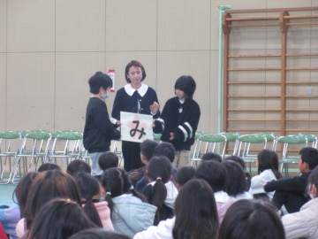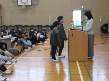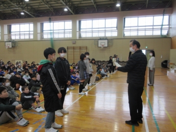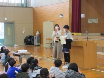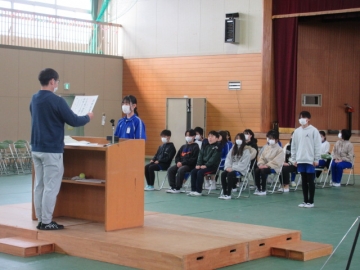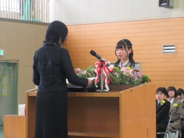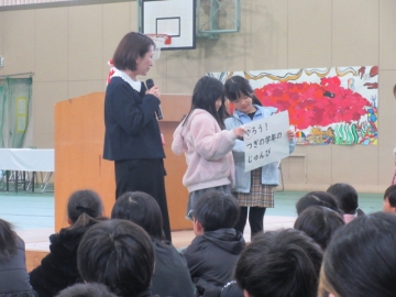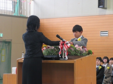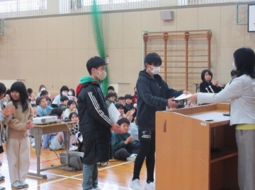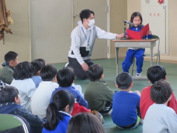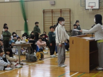 図書委員長さんから、6年生の代表者に賞状が手渡されます。
