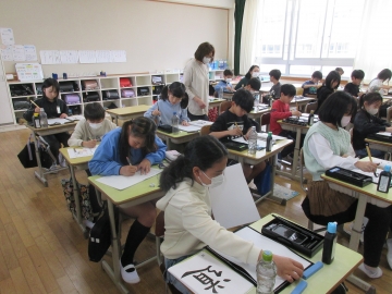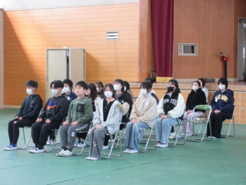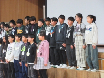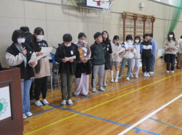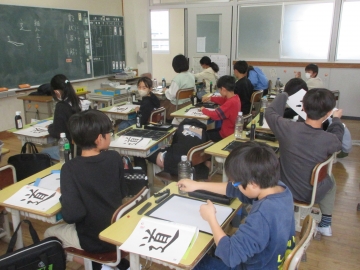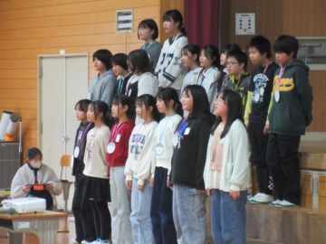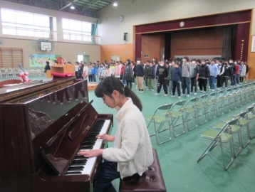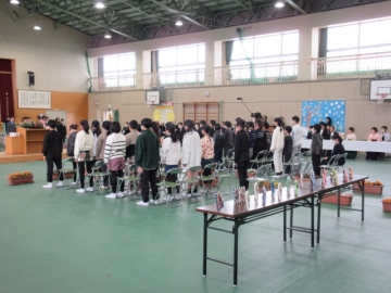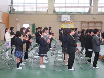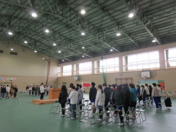 【校内書写展入選】 入選者は、名前を呼ばれたら立ちます。