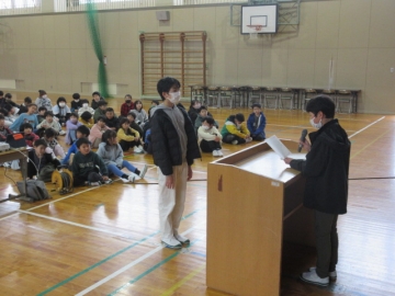 この集会は、児童会のみなさんが進めています。