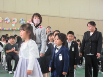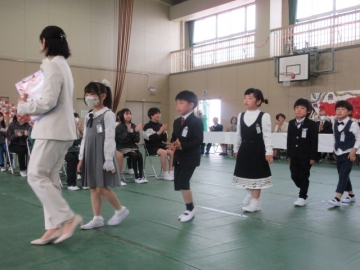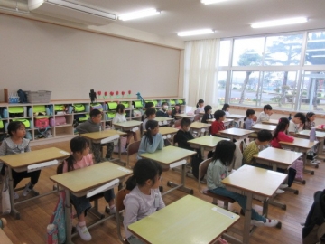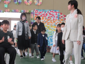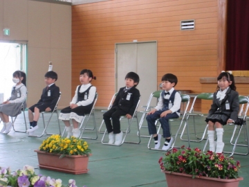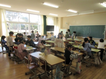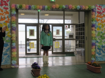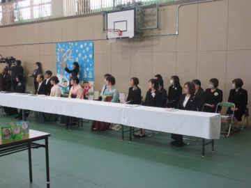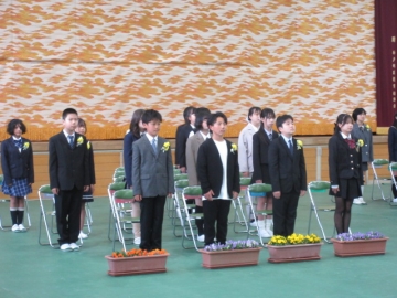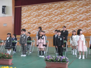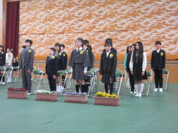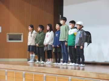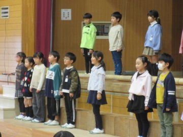 教頭先生が学級委員の名前を一人ひとり読み上げ、名前を呼ばれた子はその場に立ちます。