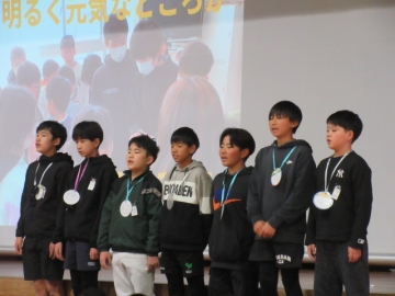 サッカーの大会で優勝した児童です。