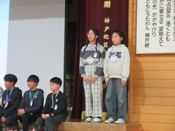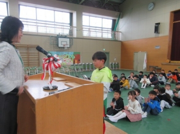 代表児童が、賞状を受け取りました。